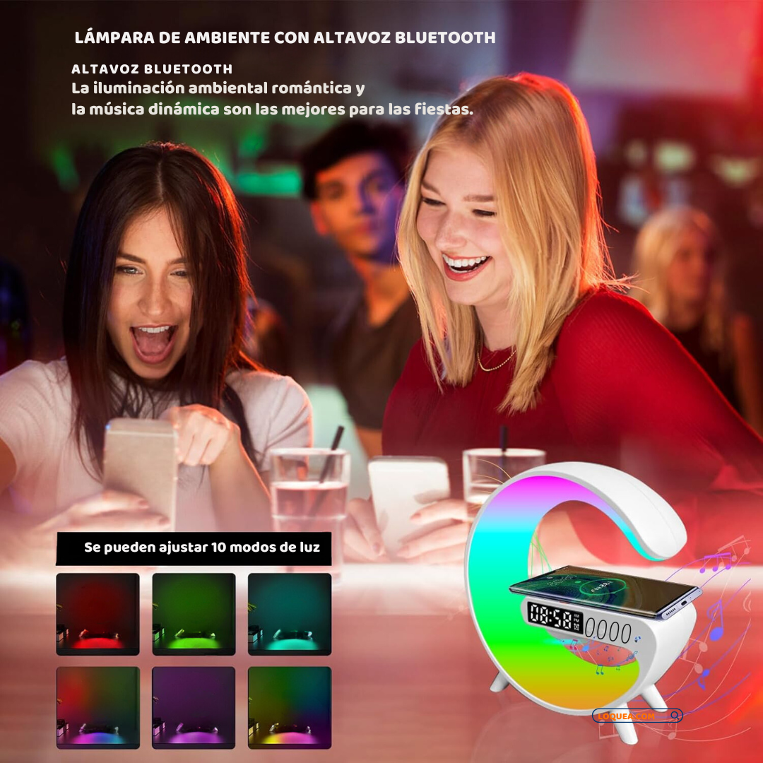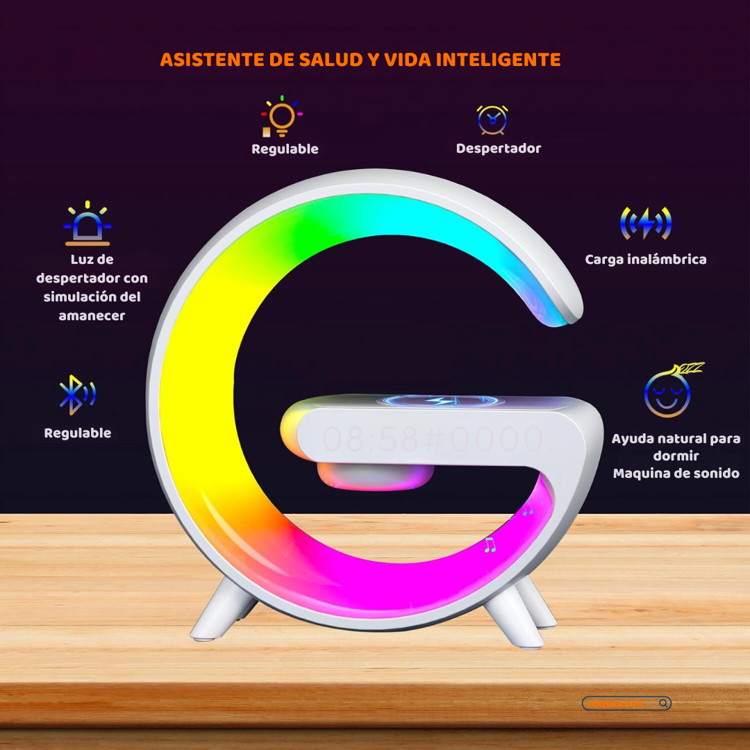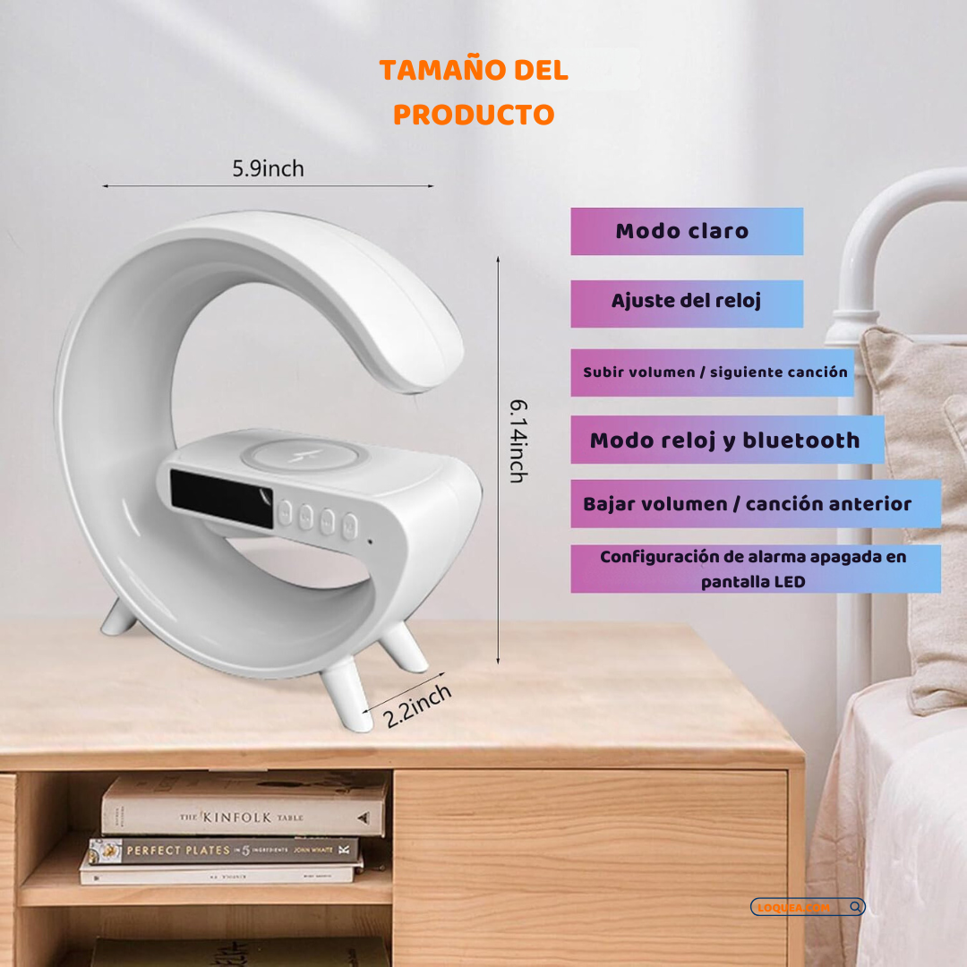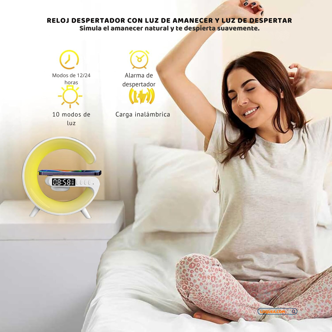 Bocina Reloj Despertador con Carga Inalámbrica y Luz LED RGB ⏰📱