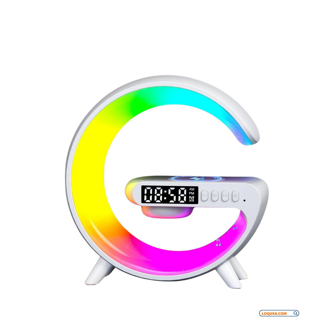 Este reloj despertador no es solo un simple despertador; es un dispositivo 4 en 1 que incluye luz ambiental LED RGB, altavoz Bluetooth, cargador inalámbrico y reloj con alarma. Su diseño moderno y en forma de “G” lo convierte en una pieza decorativa perfecta para el hogar o la oficina, además de ser funcional para tu día a día.