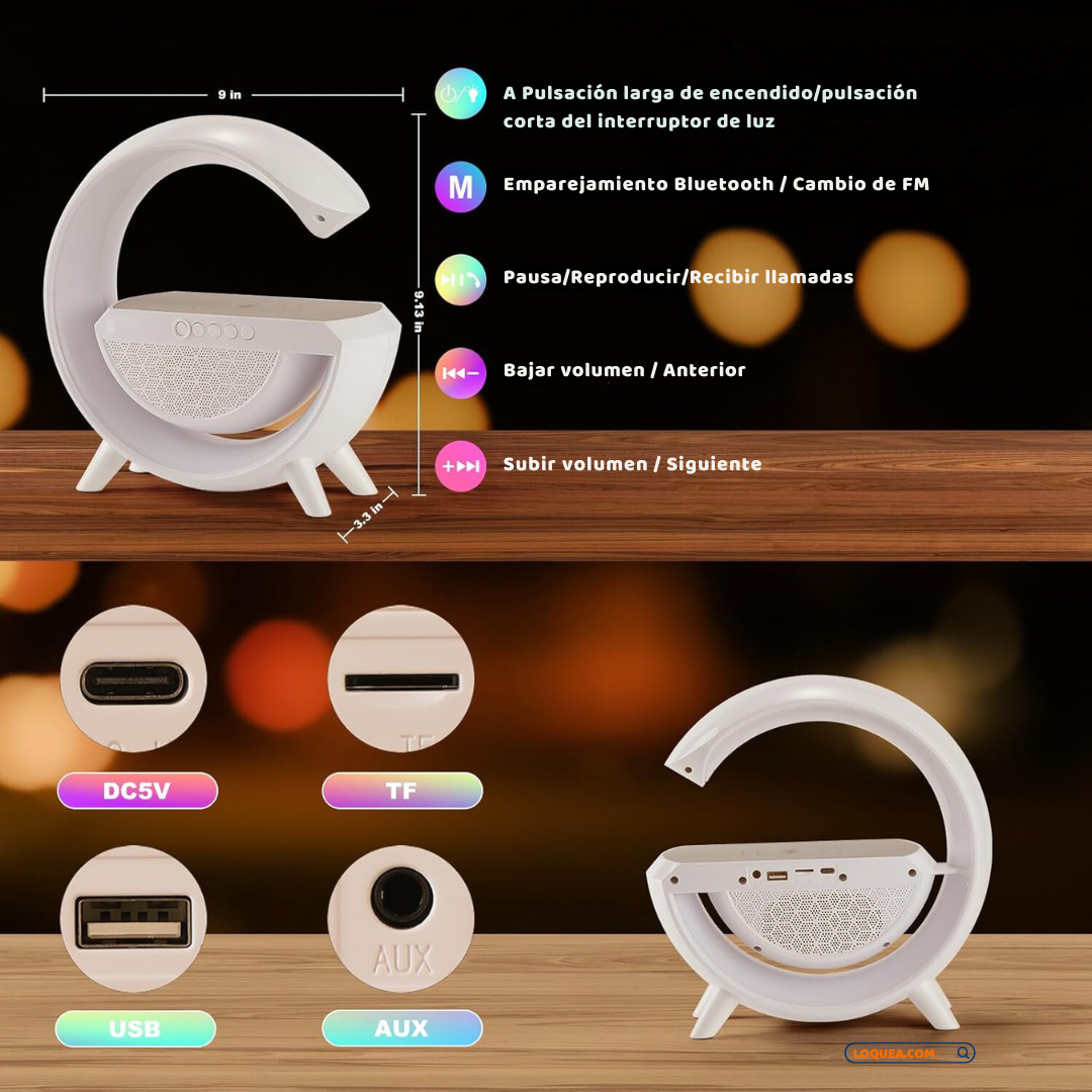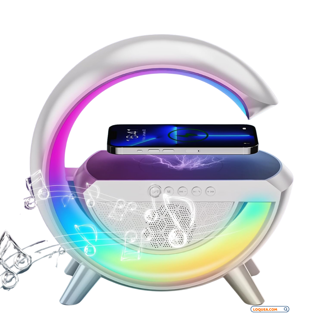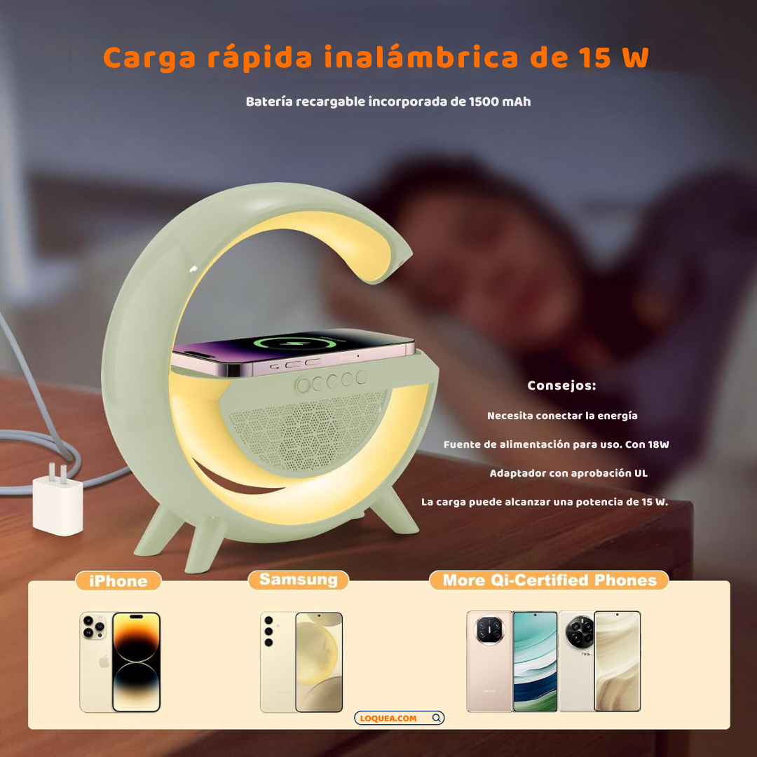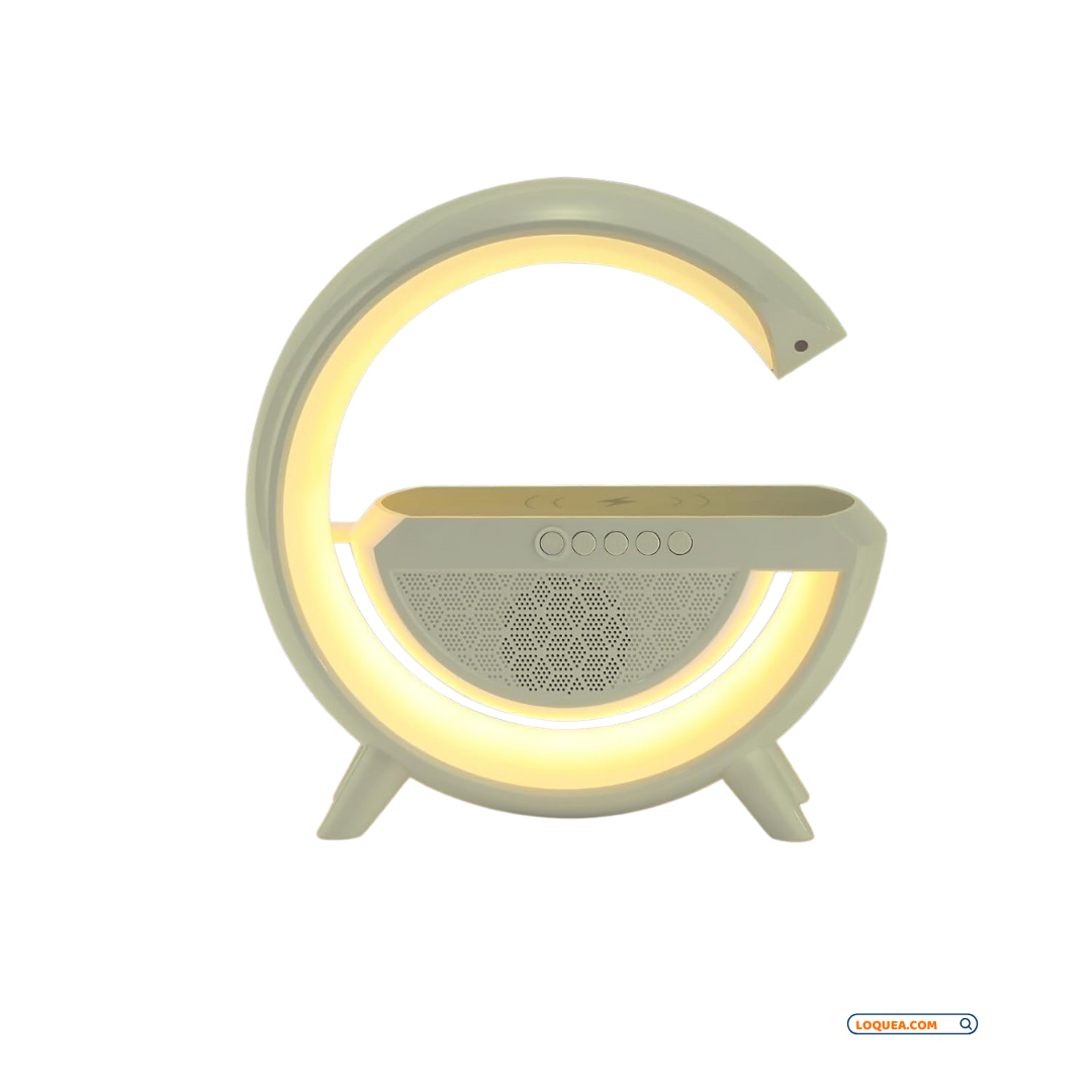 Lámpara Atmosférica LED en Forma de "G" Cargador Inalámbrico y Bocina Bluetooth