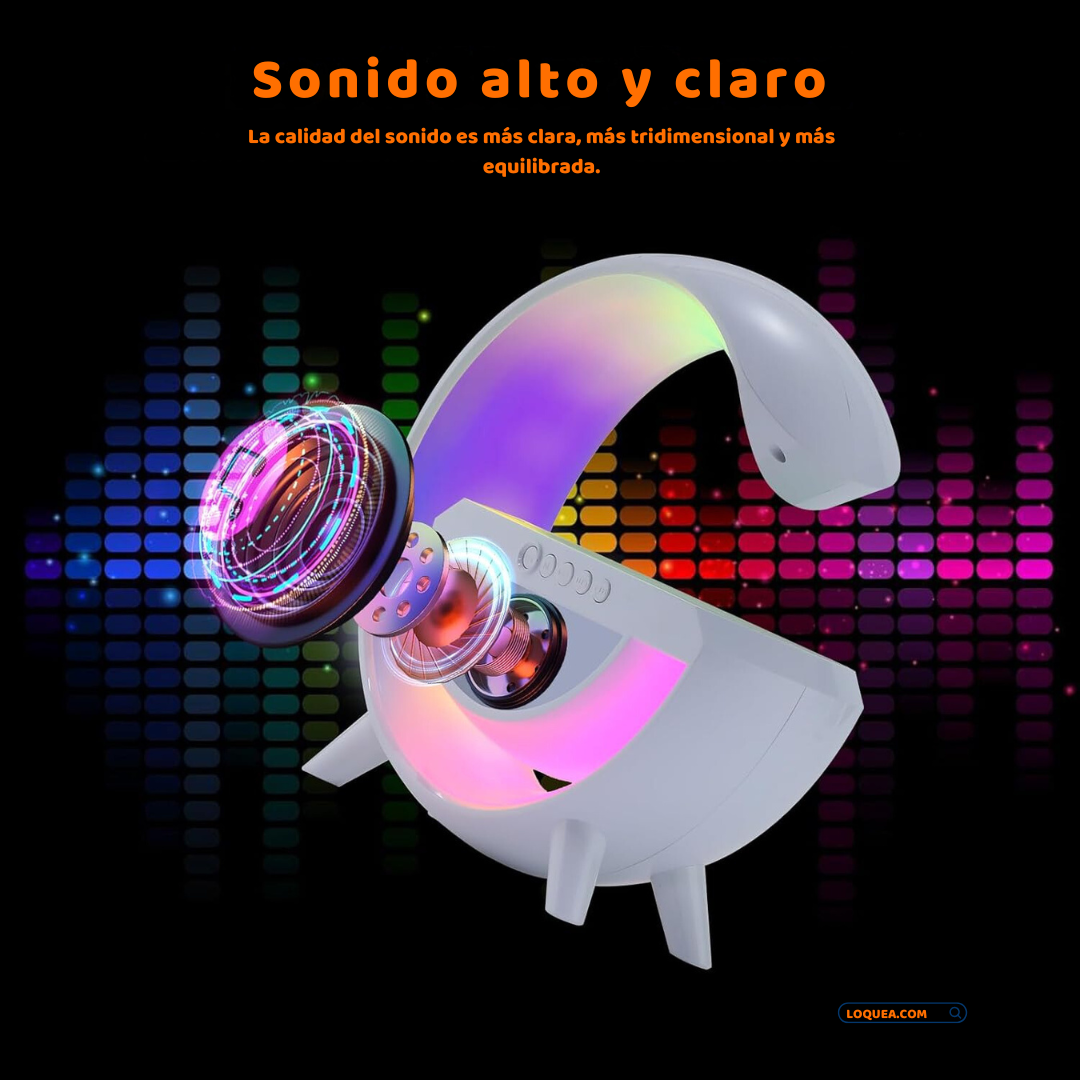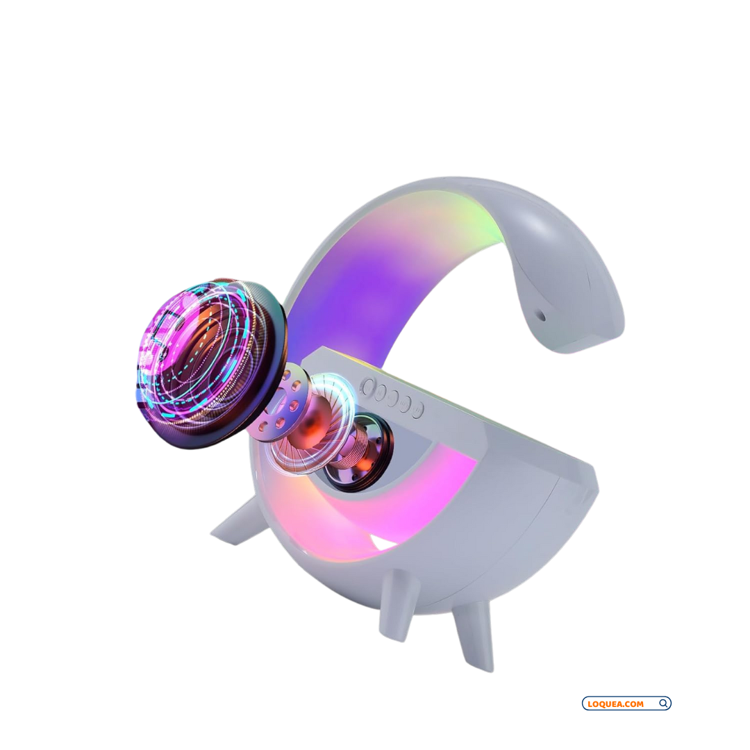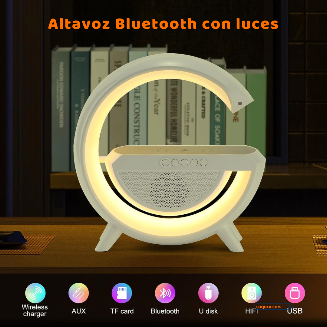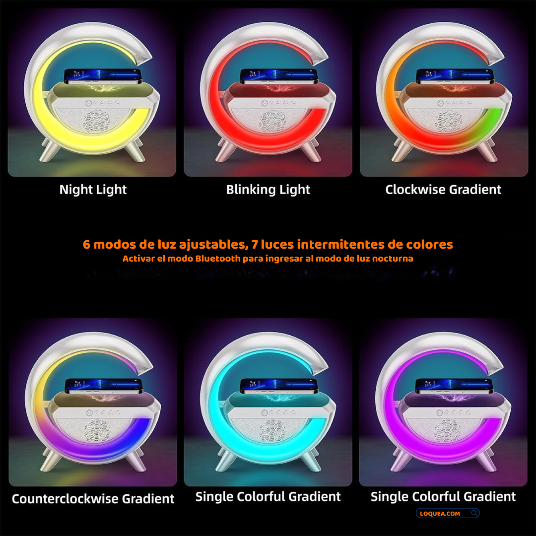 Lámpara Atmosférica LED en Forma de "G" Cargador Inalámbrico y Bocina Bluetooth