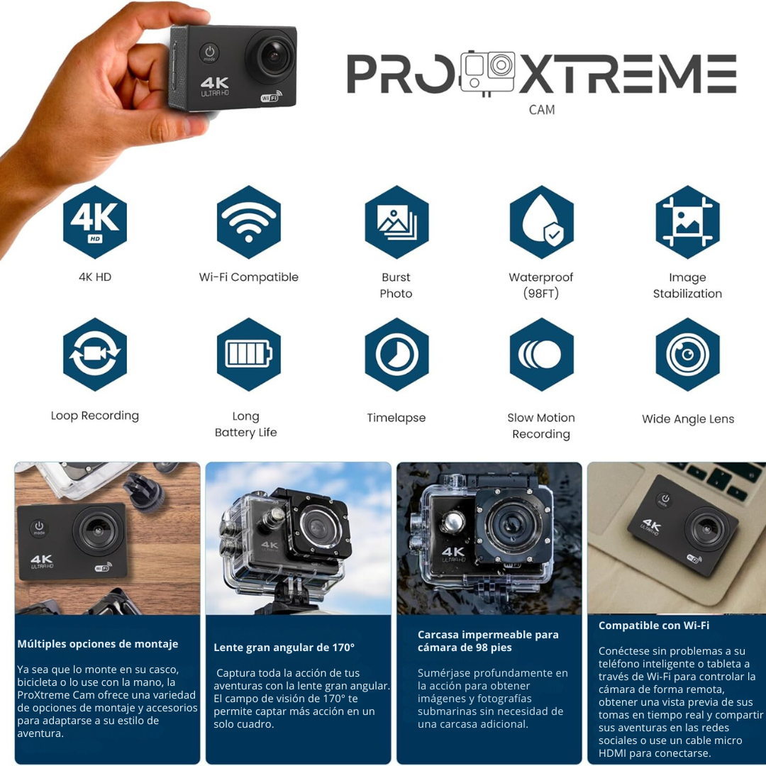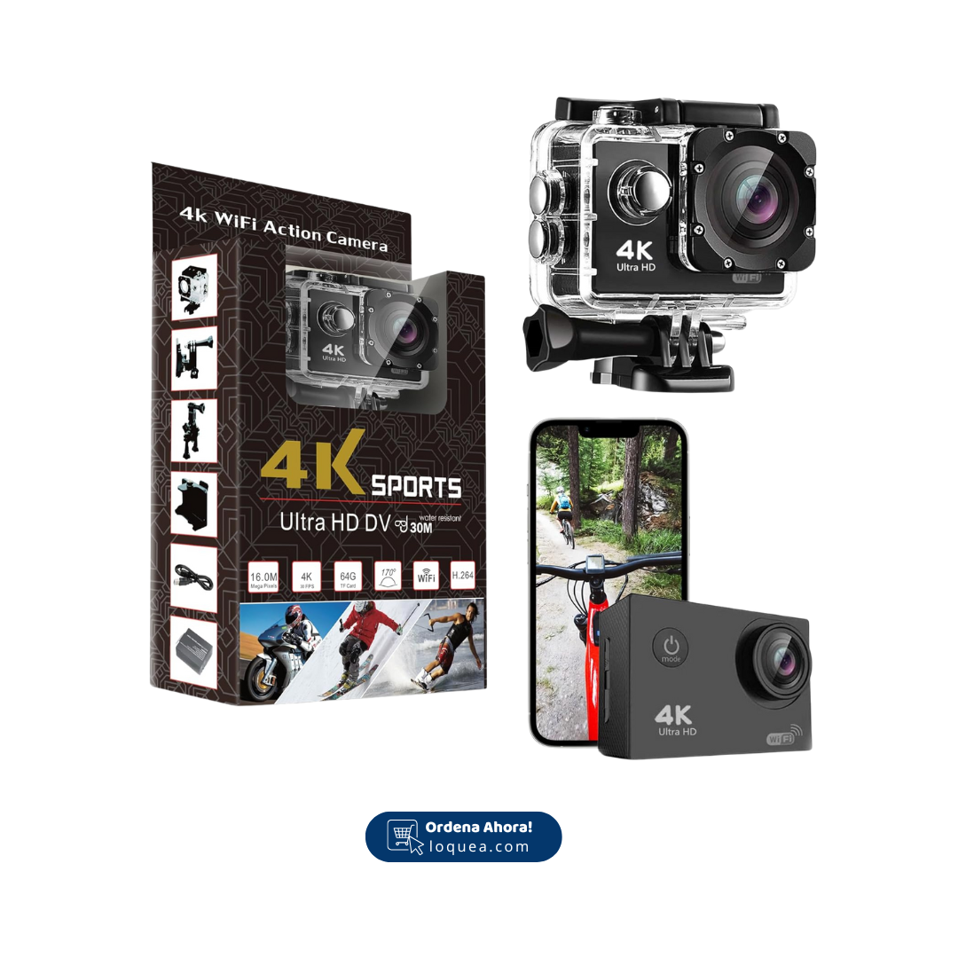 Captura tus aventuras con esta cámara deportiva 4K Ultra HD. Diseñada para amantes de la acción, ofrece videos nítidos, conectividad WiFi, y accesorios para todo tipo de actividades extremas. 🌊🏂