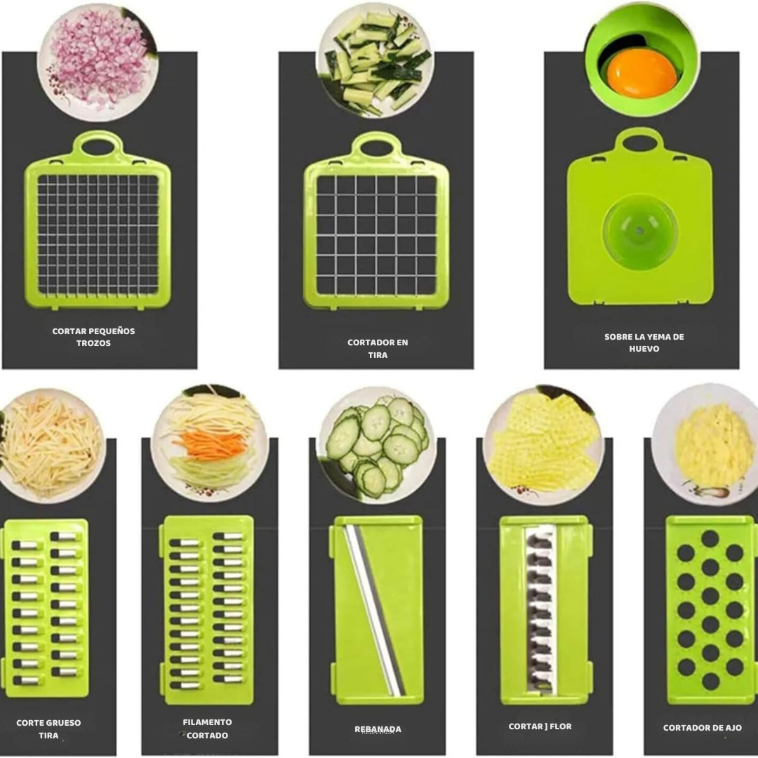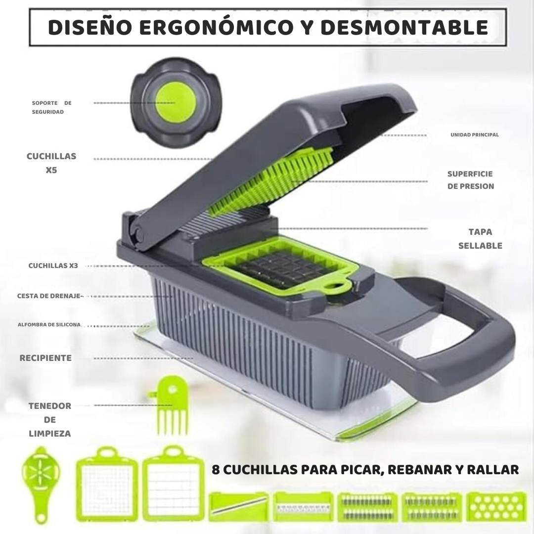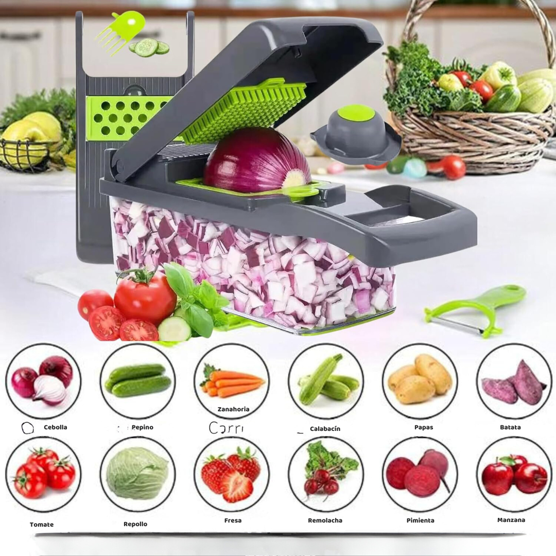 ¿Cansado de perder tiempo cortando verduras y llorando con las cebollas? Con nuestro Cortador y Picador Multifuncional 14 en 1, transformar tu experiencia en la cocina será más sencillo que nunca. Olvídate del desorden y los cortes irregulares, y disfruta de un proceso rápido, seguro y sin esfuerzo. Ideal para cualquier cocina, ya seas chef profesional o amante de la cocina casera.